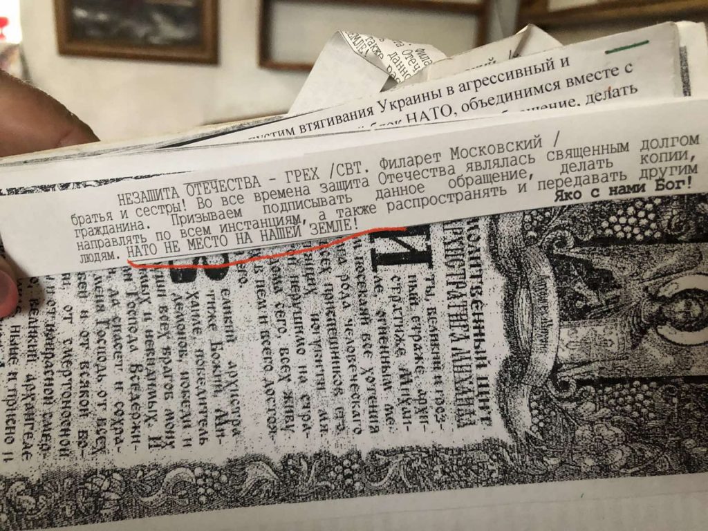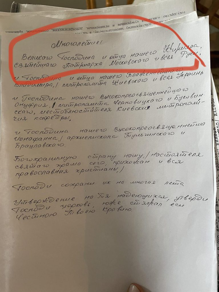 Втім, місцеве духовенство УПЦ МП не тільки заперечувало зібрання вірян, а й не погоджувалось залишати храм. Після того, як 9 вересня було завершено процедуру перереєстрації релігійної громади, інвентаризаційна комісія розпочала опис майна та виявила дивну літературу. Вона стосується того, як поминати московського патріарха Кіріла, ситуації з православними храмами у Сербії наприкінці 1990-их, критики НАТО, міфічного «триєдиного народу» тощо.