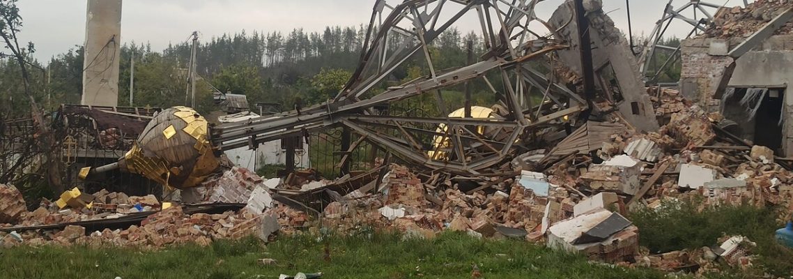 «На території напівзруйнованого монастиря сильно смердить. Це залишки мертвої кози, які росіяни кинули просто під дерево. Навколо – купа відстріляних тубусів з ручних протитанкових гранатометів і бита цегла. Неподалік лежить купол дзвіниці – він впав після того, як російська авіабомба влучила в монастир. Над церквою вже висить український прапор. Хлопці спочатку хотіли повісити його над куполом, але не змогли туди дістатися.