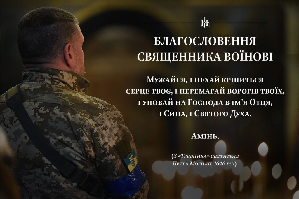Предстоятель ПЦУ митрополит Епіфаній на своїй сторінці в Facebook опублікував молитву – благословення священника воїнові з Требника Петра Могили.