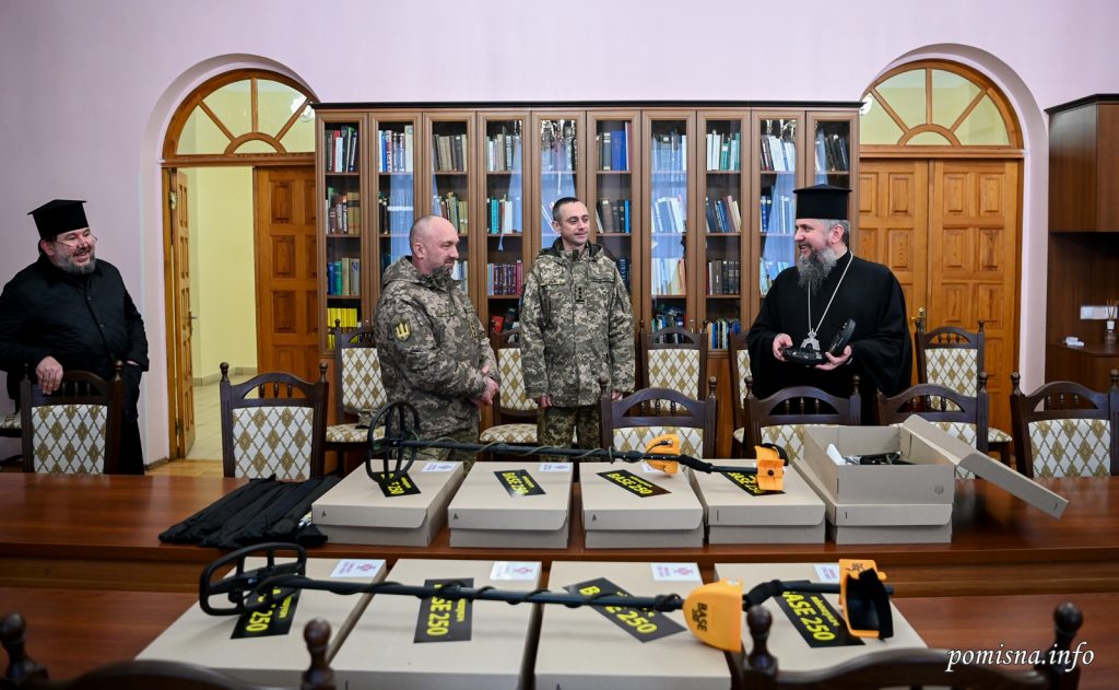 Тож задля допомоги у розв’язанні цієї проблеми Митрополит Епіфаній передав захисникам Батьківщини міношукачі й інші пристрої для виявлення мін та вибухонебезпечних предметів.