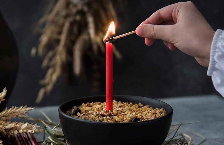 Серед страв святкової вечері обов’язково має бути кутя, або коливо. Це варена пшениця з медом і маком, яку споживають першою. Кутя з’явилася ще в дохристиянську добу, і з тих часів вона зберегла символізм поминальної страви. Пшениця, як зерно, щороку оживає, тому є символом вічності, мед – символ вічного щастя святих у Царстві Божому, мак – символ роду.