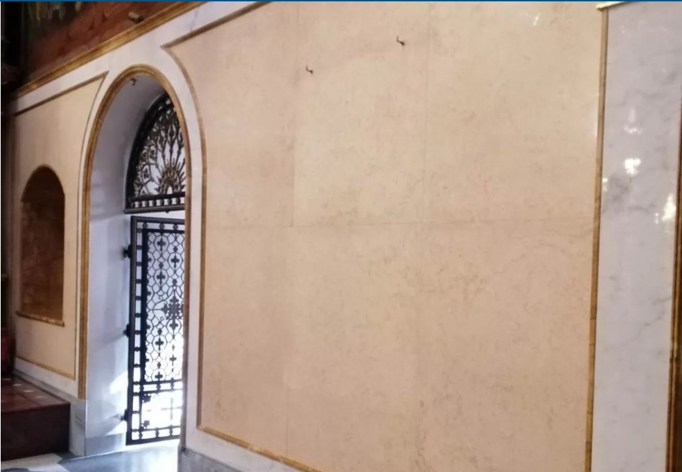 Зокрема, де раніше були ікони і прикрашали стіни собору, наразі пусті місця.
