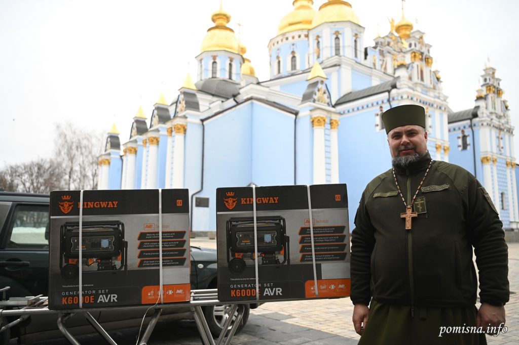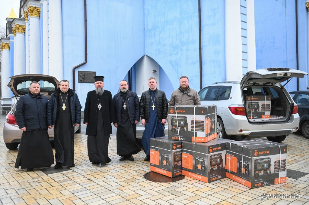 Митрополит Київський і всієї України Епіфаній на подвір’ї Свято-Михайлівського Золотоверхого монастиря передав електрогенератори для потреб парафій Київщини, Херсону, інших регіонів та захисникам України.
