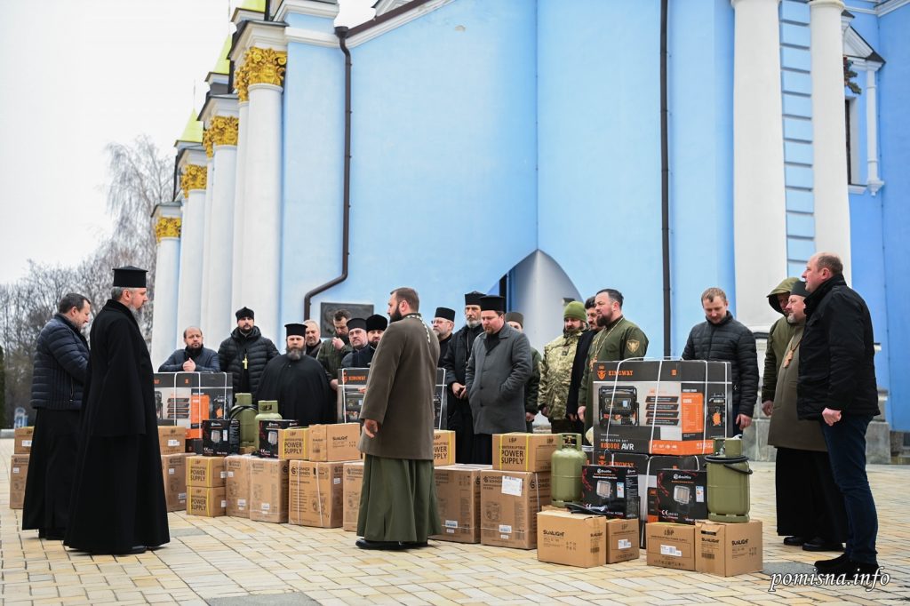 Митрополит Київський і всієї України Епіфаній 16 березня 2023 року на подвір’ї Свято-Михайлівського Золотоверхого монастиря передав священникам електрогенератори й інше обладнання для потреб громад та захисників України.