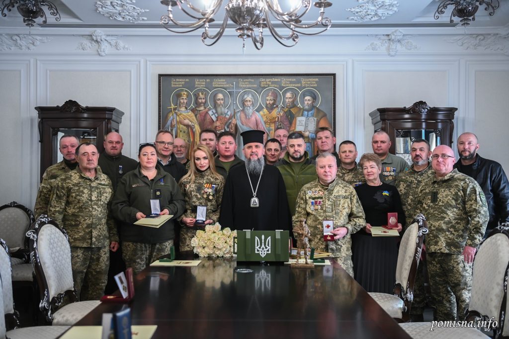Митрополит Епіфаній поспілкувався з добровольцями з приводу спротиву російській агресії та відзначив їх церковними нагородами.
