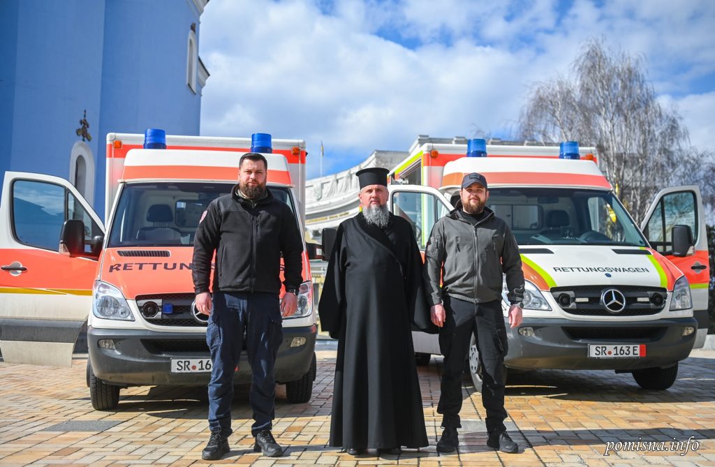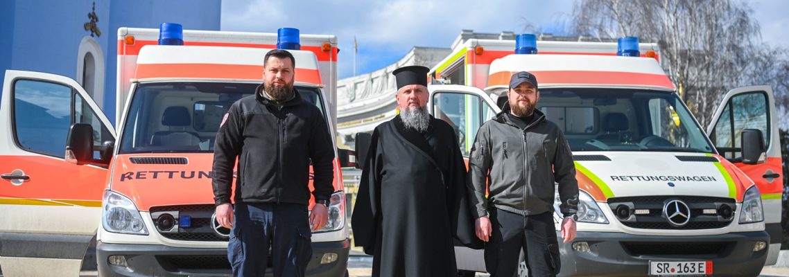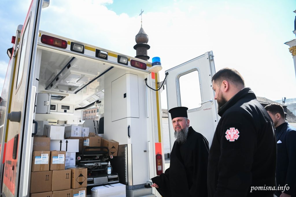 Митрополит Київський і всієї України Епіфаній на подвір’ї Свято-Михайлівського Золотоверхого монастиря передав керівнику Відділу соціального служіння Київської Митрополії «Параволан» Роману Холодову два спеціалізованих автомобілі швидкої допомоги з вантажем необхідних засобів.
