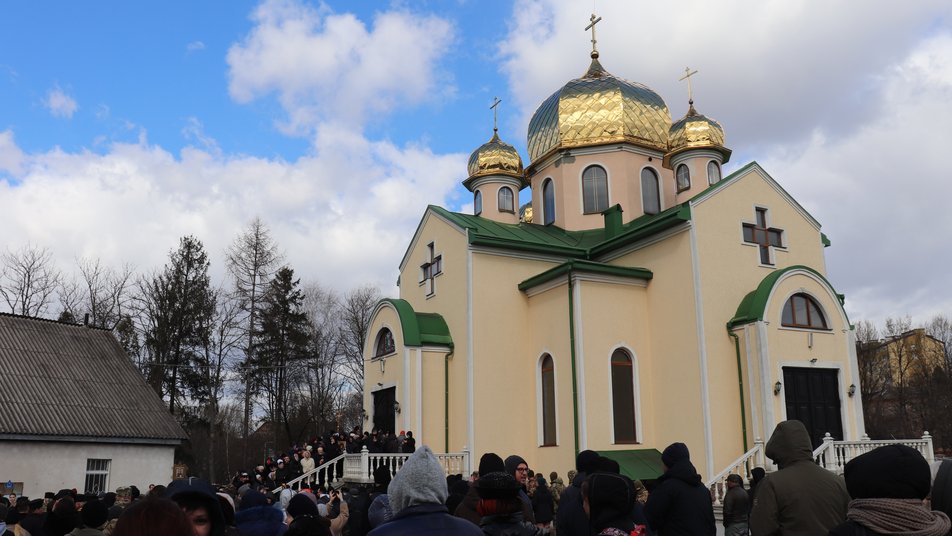 Біля храму зібралися кілька сотень людей. Між вірянами УПЦ МП та ПЦУ сталася сутичка, повідомляє кореспондентка Суспільного з місця події.