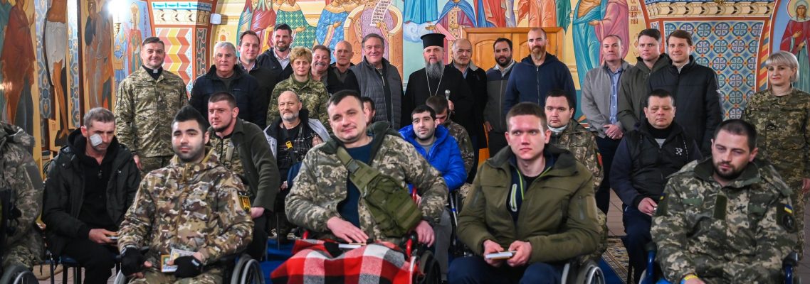 Поранені військовослужбовці радо зустріли Предстоятеля Православної Церкви України та гостя зі Сполучених Штатів Америки, який прибув із делегацією до Києва.