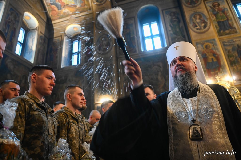 Блаженнійший Митрополит Київський і всієї України Епіфаній 13 квітня 2023 року на подвір’ї Свято-Михайлівського Золотоверхого собору освятив великодні паски, які відправляться на передову, до українських військовослужбовців.
