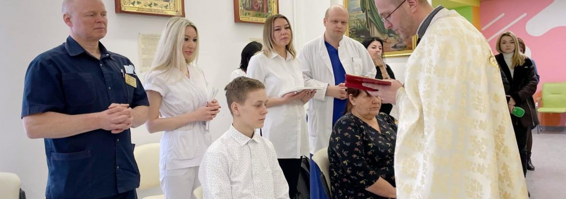16-річний Микита з Бахмута прийняв хрещення у капличці Дитячої лікарні святого Миколая. Саме в цій лікарні медики врятували хлопця. Микита отримав серйозні численні поранення під час артобстрілу Бахмута.