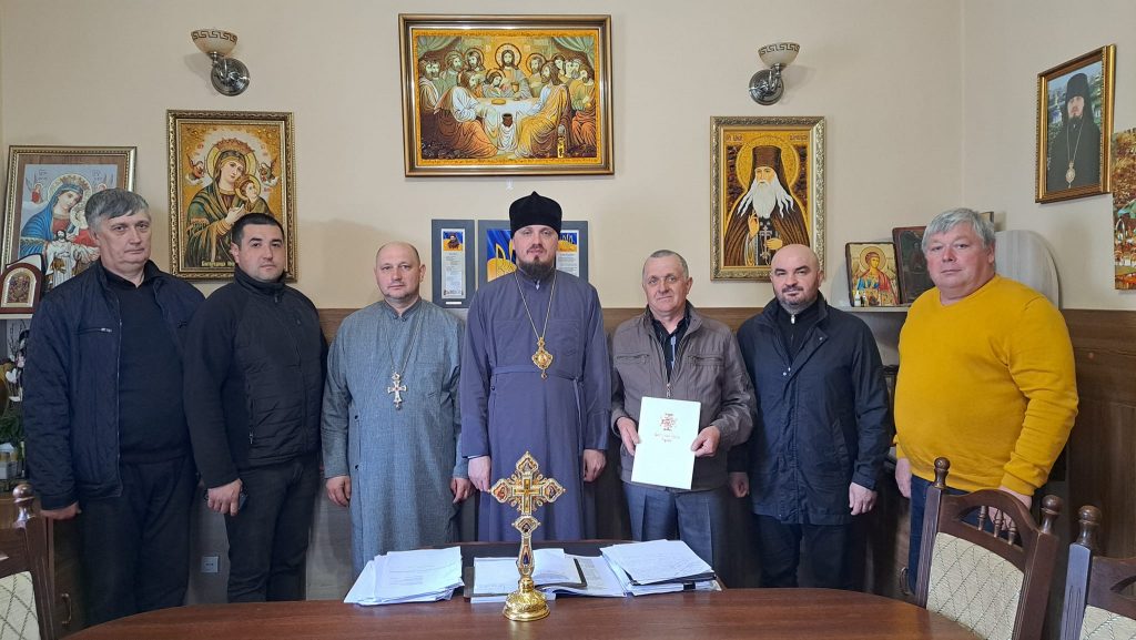 Єпископ ПЦУ прийняв громаду до Помісної Церкви, вручивши голові зборів посвідчення та указ про прийняття.