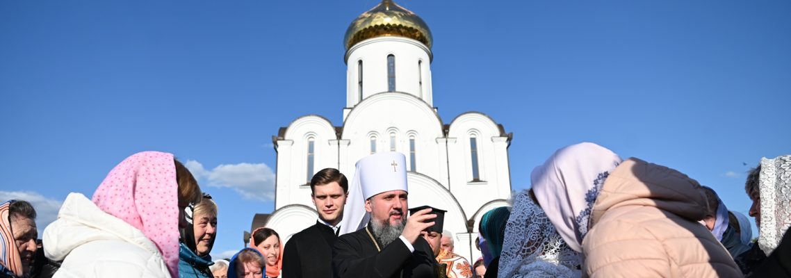 В ошатному храмі, над будівництвом якого згадана громада трудилася впродовж 18 років, Предстоятель Православної Церкви України разом з архієреями і духовенством підніс молитви за захисників України, за наш народ.