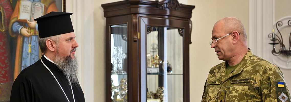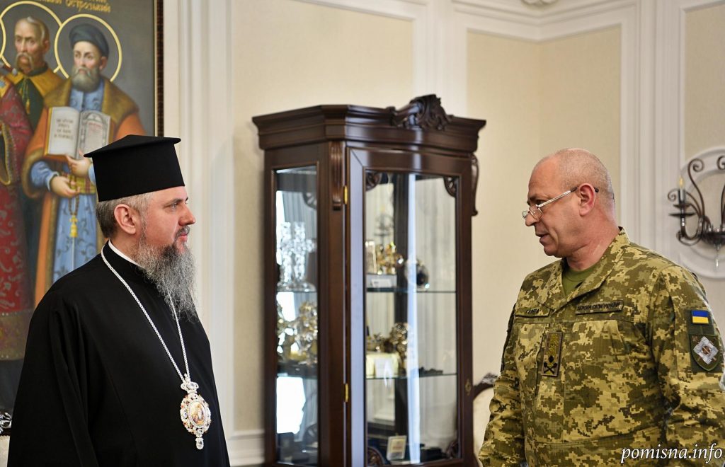 Митрополит Київський і всієї України Епіфаній 18 травня зустрівся у своїй резиденції – Митрополичому домі з командувачем Сил підтримки Збройних сил України бригадним генералом Дмитром Герегою.