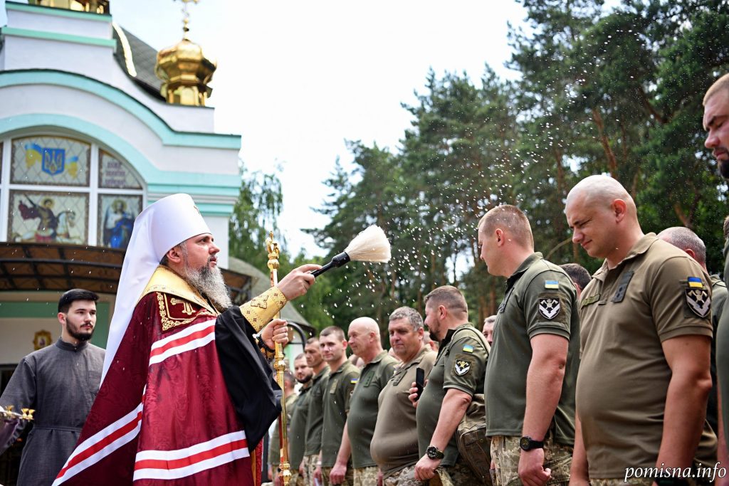 Разом з Предстоятелем автокефальної Української Православної Церкви молилися намісник Свято-Миколаївського чоловічого монастиря архімандрит Арсеній (Пожарний), місцеве духовенство, бригадний генерал Олег Гуть, командир частини полковник Сергій Євстафʼєв, інші представники командування, офіцери й особовий склад частини та представники місцевої влади.