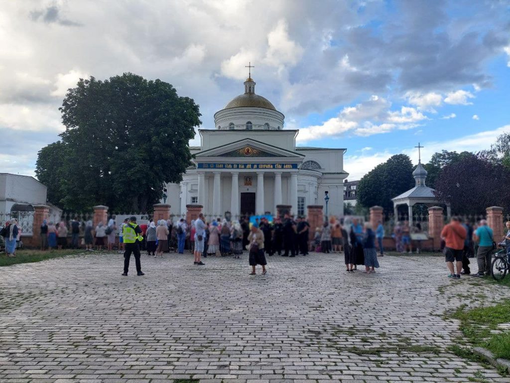 У соцмережах з’явилося відео, як в Білій Церкві служителі Моспатріархату скручують і забирають із собою доріжки з Преображенського собору.