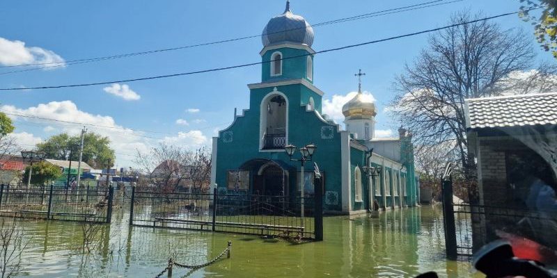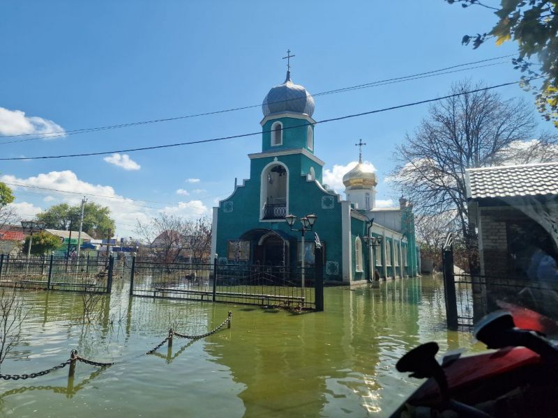 Храм було затоплено після російського теракту на Каховській ГЕС. Хоч велика вода сходить, будівля та територія навколо неї досі підтоплені. Пропагандисти з російського видання “Комсомольська правда” оприлюдини фото храму та коментар священника Російської православної церкви Дмитра Кроткова.