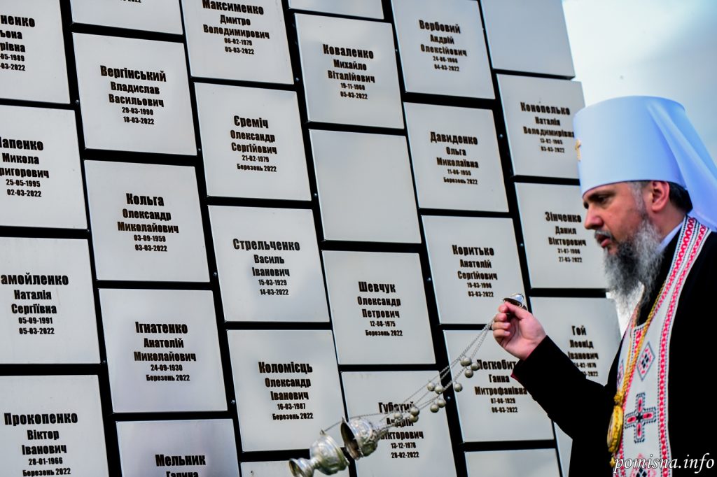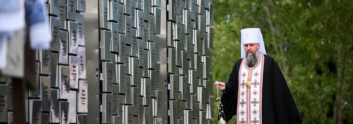 Після освячення іконостасу Митрополит Епіфаній помолився біля місцевого меморіалу, створеного на місці, де була братська могила, за спокій душ невинно убитих російськими окупантами мирних мешканців Бучі.