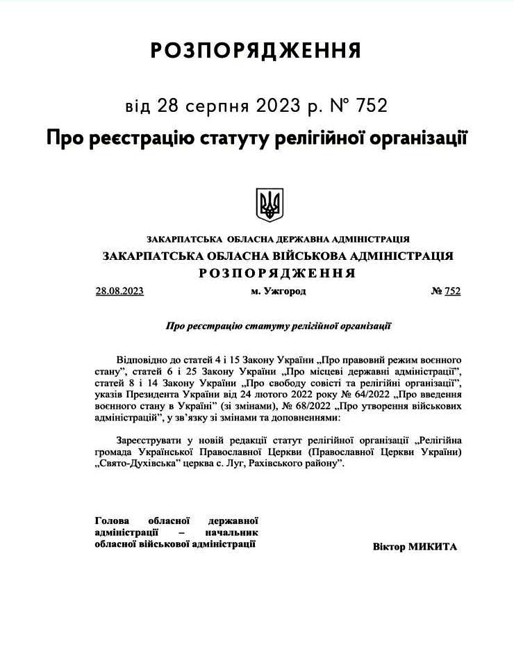 “…наша громада Православної Церкви України на законних пiдставах хотiла зайти в храм, але мiсцевий священник i його клiка “яку по словах самих лужан позвозили з цiлого Закарпаття”, стали перед дверима храму i в звичайнiй своїй манерi спiваючи рiзнi пiснеспiви заважали процесу. …Нiхто iз наших людей не хоче бiйок i кровi, нам вистачає кровi наших Воїнiв, тому ми як культурнi люди будемо звертатись до вiдповiдних органiв про надання нам вже офiцiйної “як їм того треба пiдстави”, – йдеться в повiдомленнi на сторiнцi релiгiйної громади ПЦУ села Луг.