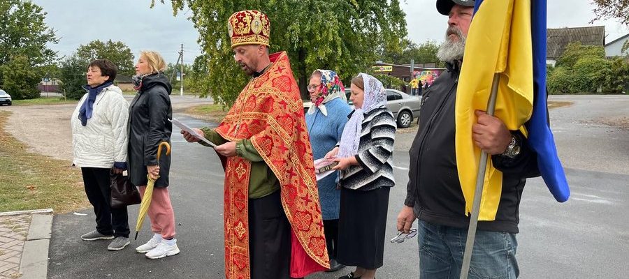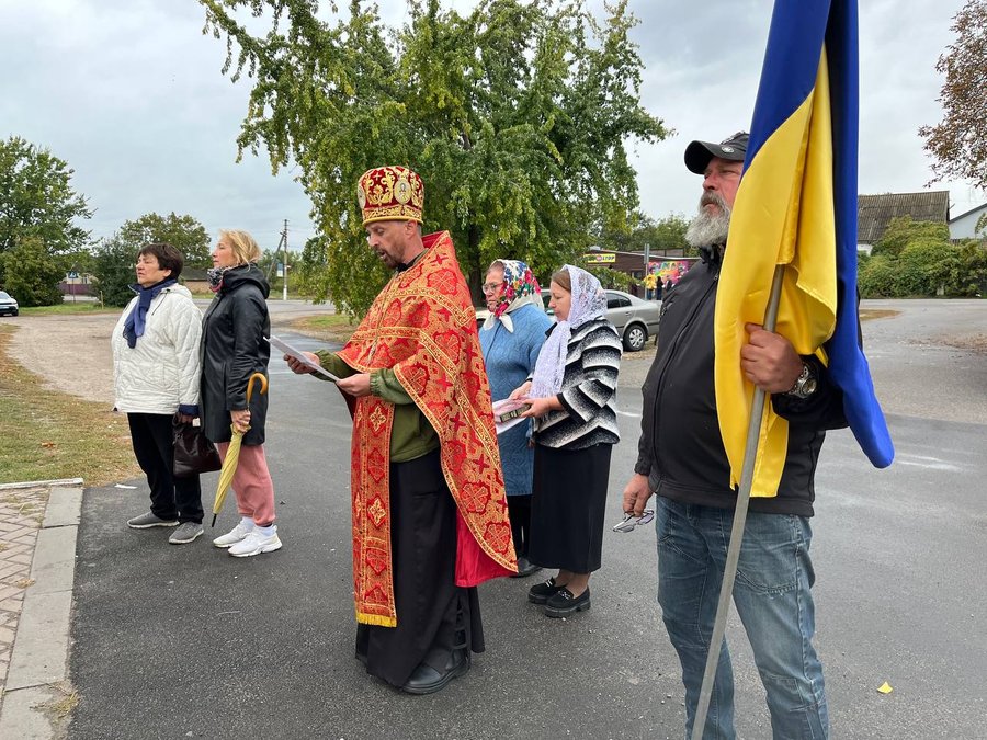 У Мошнах на Черкащині віряни ПЦУ не змогли зайти до храму, службу за захисників та захисниць України провели просто неба.
