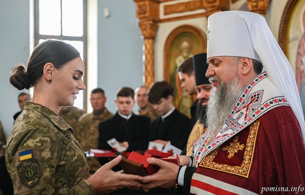 Після відправи Митрополит Епіфаній звернувся до присутніх зі словом та відзначив захисників України церковними нагородами.