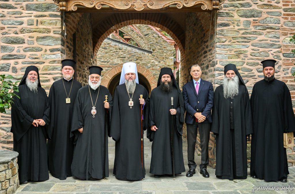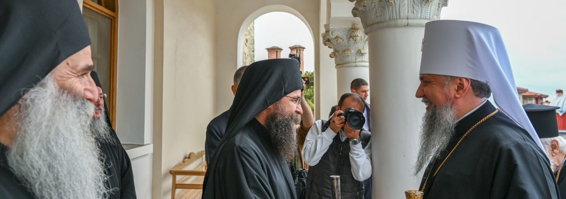 «Сьогодні ми з великою радістю прибули до Святої Гори – до Саду Богородиці – сказав у вітальному слові Предстоятель ПЦУ Митрополит Епіфаній. – Для всіх нас Афон є особливим духовним місцем, бо тут постійно звучить молитва про весь світ. З цим місцем наш народ поєднаний вже понад тисячу років. Завтра за старим стилем ми будемо згадувати пам’ять отців Києво-Печерських, які звершували подвиг і спочивають у печерах преподобного Антонія – того самого святого, який прийшов від нашого народу сюди, щоби навчитися чернечого життя, а потім з благословенням старців Святої Гори повернувся до Києва, де заснував нашу Київську Печерську лавру. Дякую за ваш теплий прийом і за молитви, які ви підносите за народ України. Ми віримо, що Бог допоможе зупинити кровопролиття, дасть перемогу над злом і благословить нас всіх справжнім миром».