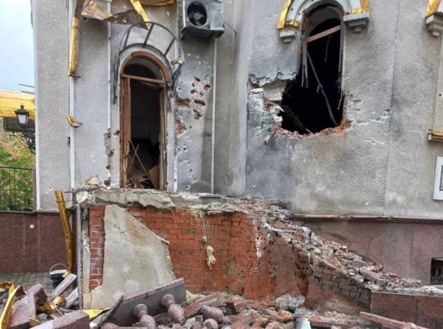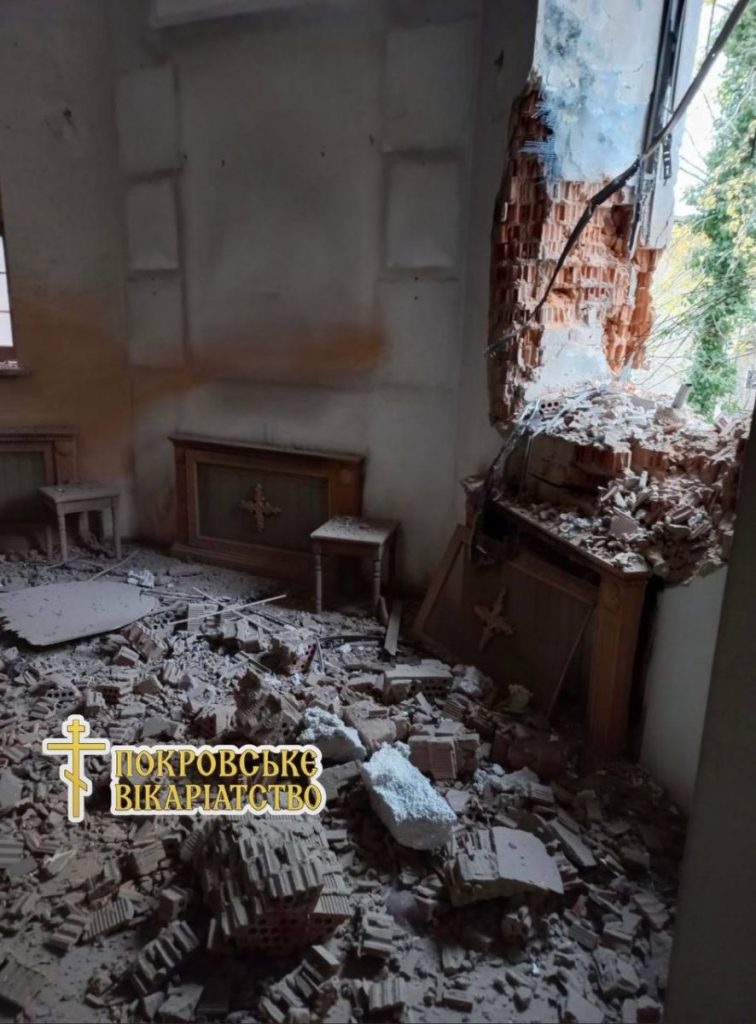 Снаряд пробив стіну святині, зруйнувавши частину вікна та внутрішнє оздоблення.