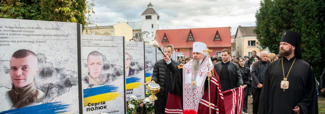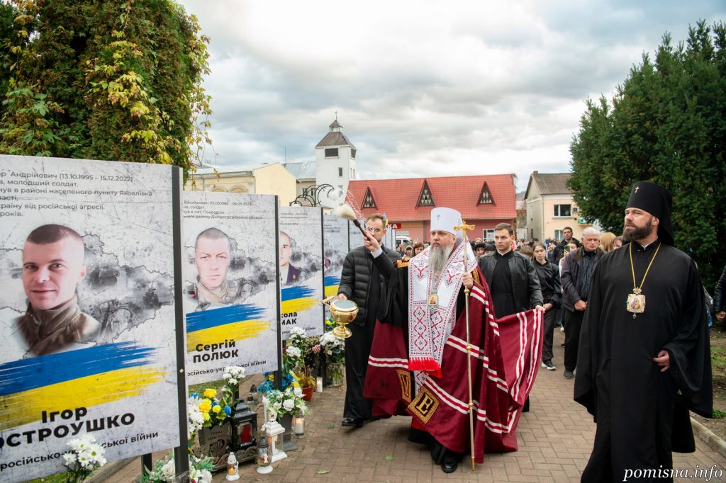 У місті Косові, на центральній площі біля Меморіалу героїв України, Предстоятель звершив Панахиду за спокій душі Патріарха Володимира та душ полеглих захисників Батьківщини, які віддали своє життя за волю та незалежність України.