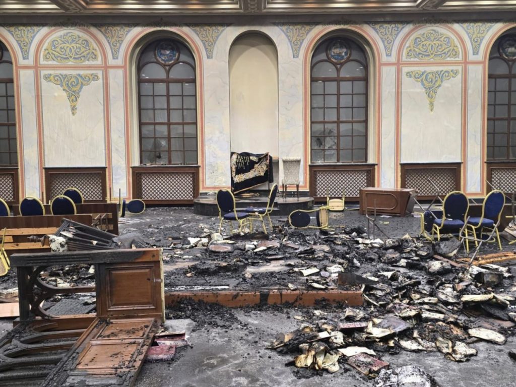Інцидент стався у момент, коли охоронець ненадовго залишив приміщення. Чоловік проник усередину синагоги, зібрав книги та підпалив їх. Поліція оперативно прибула на місце події та затримала зловмисника.