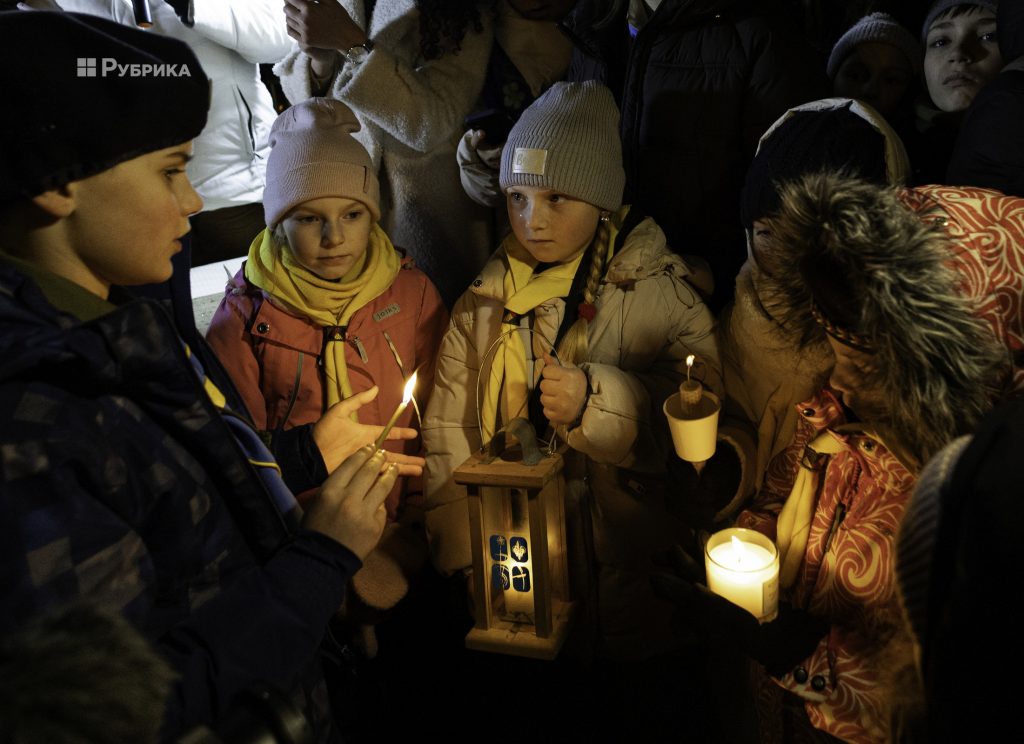 Сотні киян та гостей з інших міст України зібралися на Михайлівській площі, аби долучитися до передачі Вогню та запалити свої лампадки, повідомляє «Рубрика».