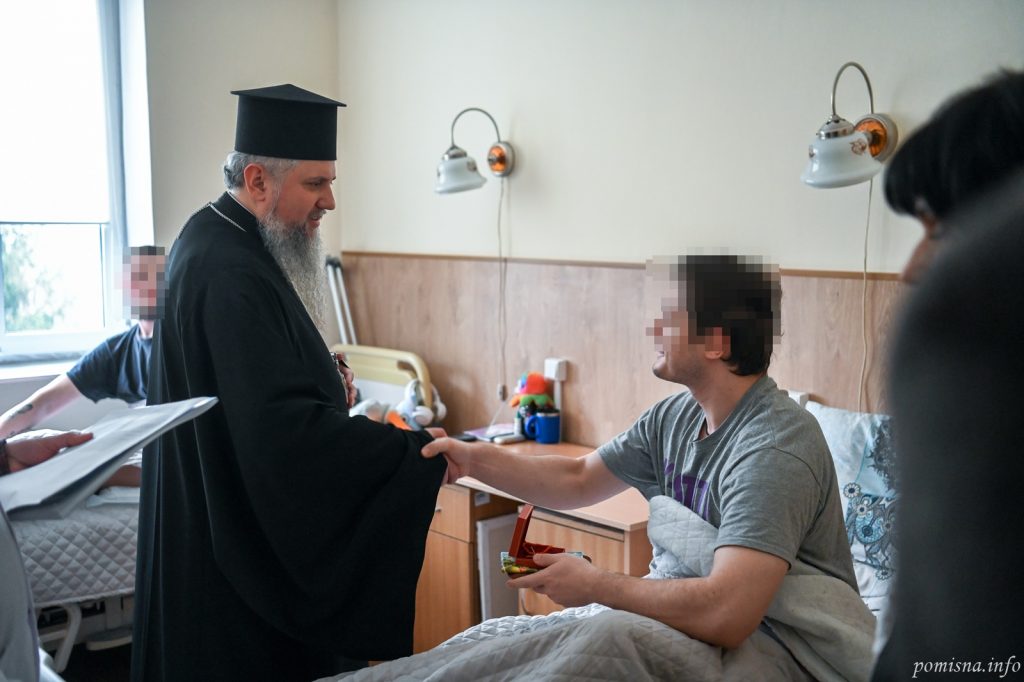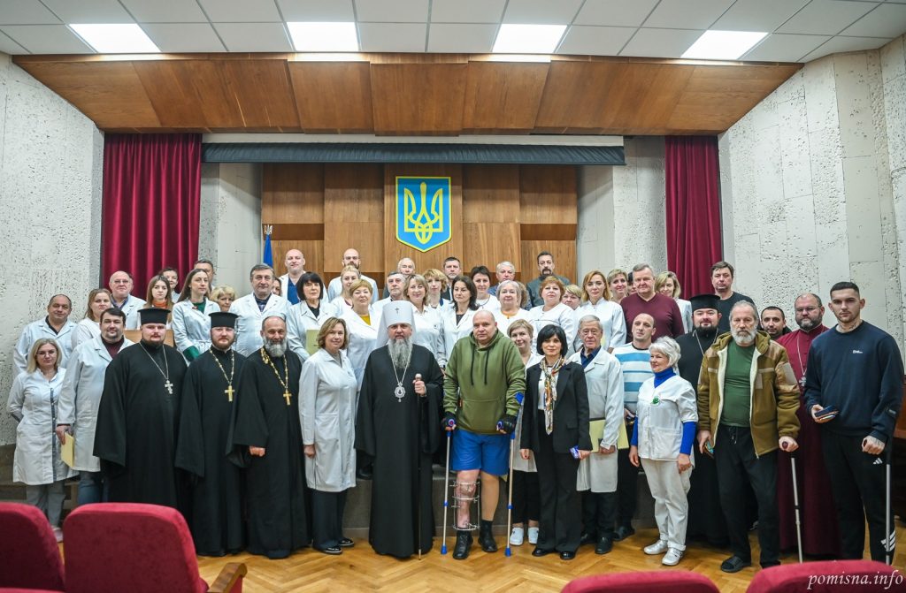 Після відправи в актовій залі установи Митрополит Епіфаній подякував військовослужбовцям за захист Батьківщини, а лікарям – за піклування про поранених, і відзначив церковними нагородами воїнів, які проходять тут лікування, а також керівництво й співробітників медичного закладу.