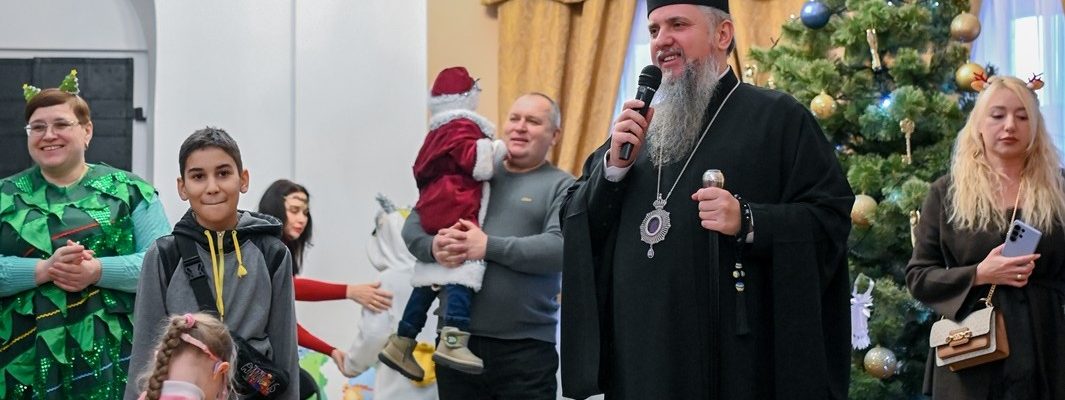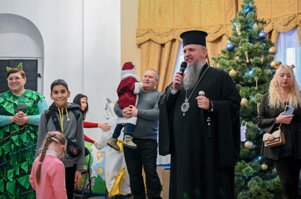 Предстоятель Православної Церкви України привітав дітей із Різдвяними святами, вручив їм подарунки та поспілкувався з учасниками святкового заходу.