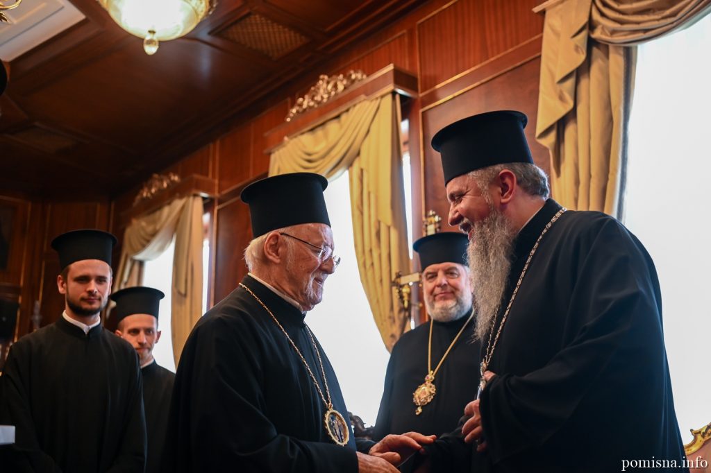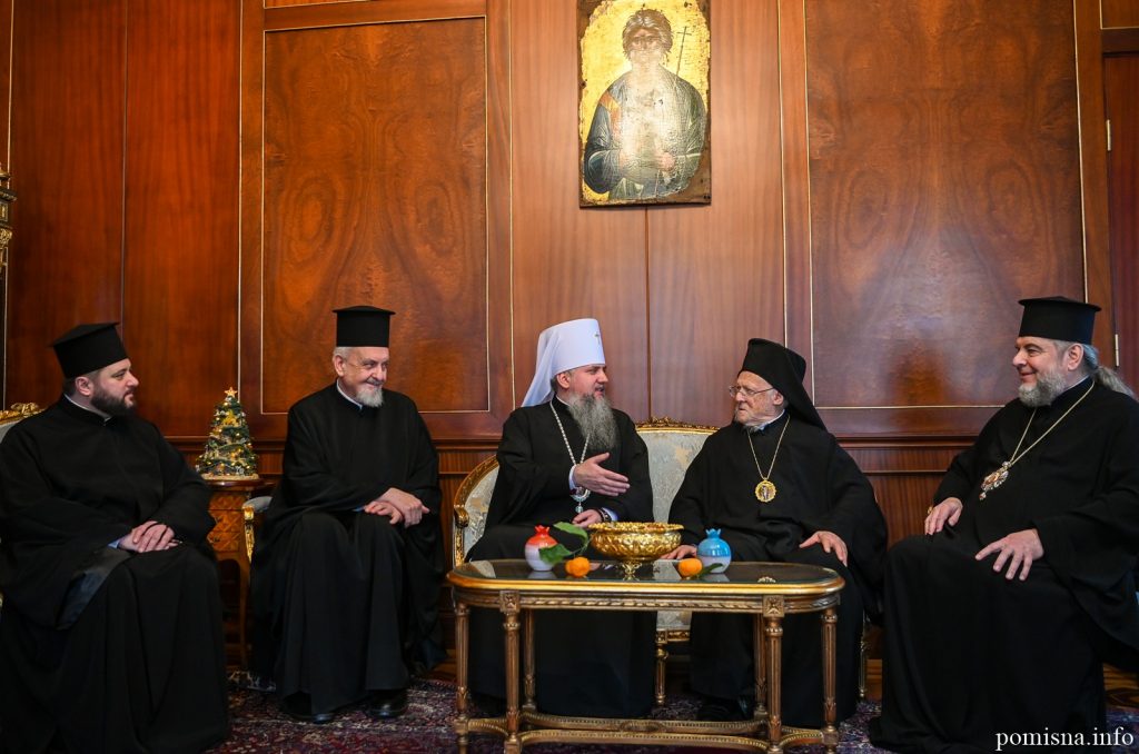 «Ми раді вітати Ваше Блаженство і братів у Вселенській Патріархії, раді Вашому візиту до нас, особливо з такої історичної нагоди та в час, коли вирішується майбутнє миру для України. Ми запевняємо, що наше рішення надати Томос про автокефалію було, є і залишиться твердим і незмінним. Такий канонічний порядок і така є відповідь Матері Церкви на численні прохання вашого кліру, народу і держави. Ми вітаємо Ваше Блаженство і радіємо, що завтра спільно піднесемо подяку Богові під час літургії на Богоявлення», – зазначив Вселенський Патріарх Варфоломій.