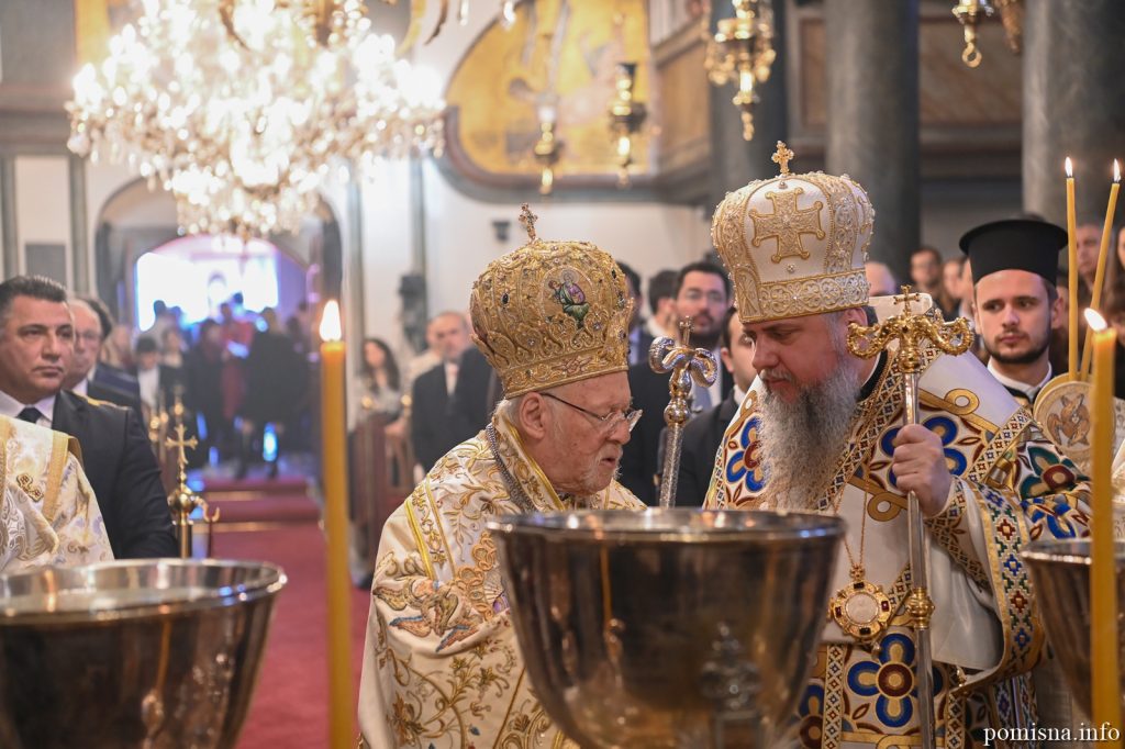 Наприкінці літургії у своєму слові, зверненому до Митрополита Епіфанія, Вселенський Патріарх Варфоломій, згадуючи історію, зазначив, що минуло вже сім років, відтоді як Мати-Церква з ревністю і великим зусиллям взяла на себе відповідальність за відновлення давно спотвореного церковного стану.