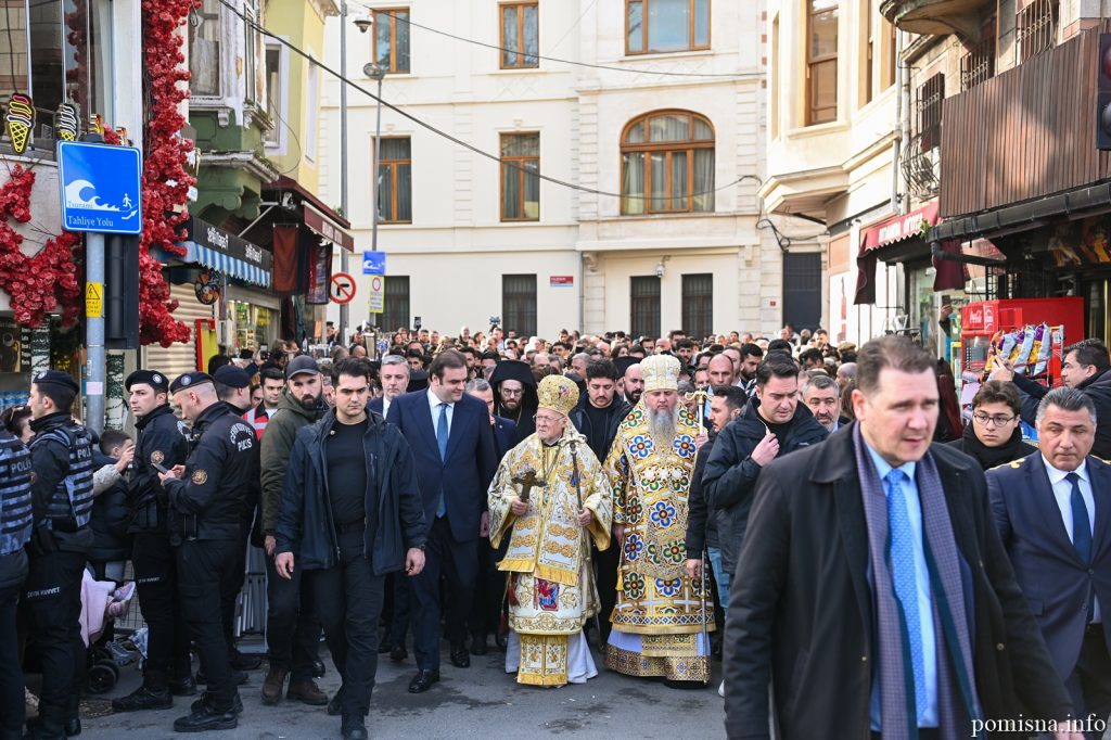Після завершення літургії її учасники за традицією вийшли на берег затоки Золотий ріг навпроти Патріаршого храму, щоби звершити тут чин Великого освячення води.