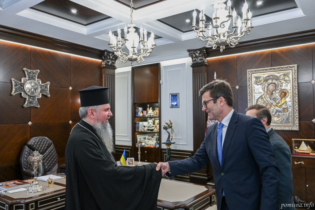 Митрополит Київський і всієї України Епіфаній 15 січня 2026 року зустрівся у своїй резиденції з Надзвичайним і Повноважним Послом Федеративної Республіки Німеччина в Україні Гайко Томсом.