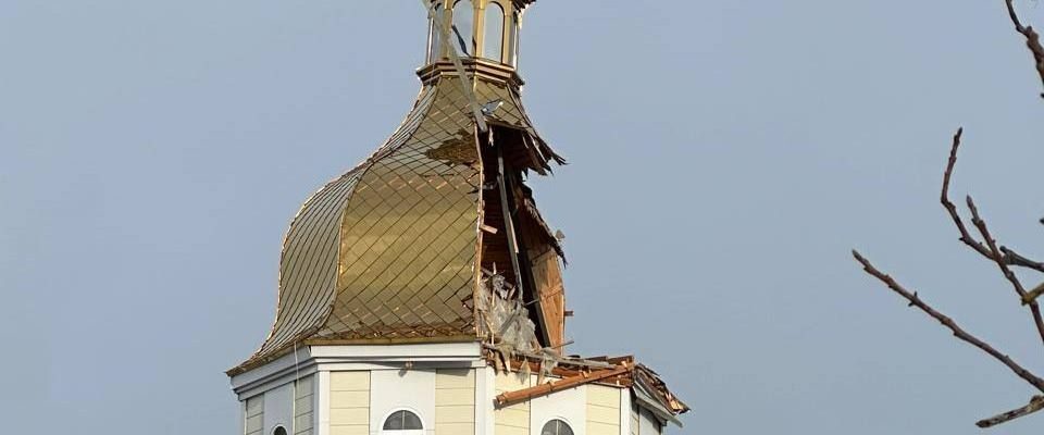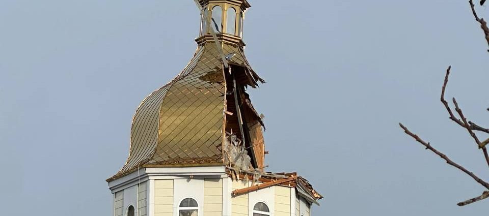 У результаті атаки було пробито купол церкви, частина якого обвалилася всередину храмової споруди.
