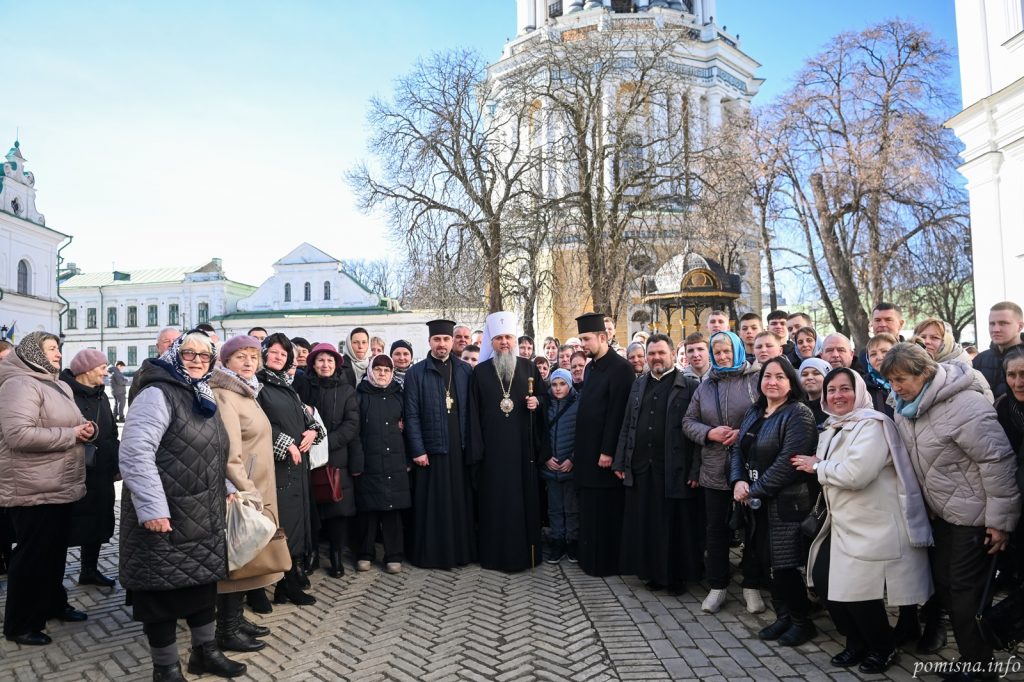 Наприкінці відправи Митрополит Епіфаній очолив молебень до преподобних отців Києво-Печерських та окропив присутніх освяченою водою.