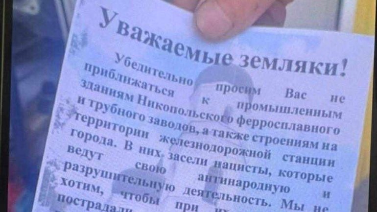 У Нікополі з’явилися ворожі пропагандистські листівки, фоновим зображенням для яких обрано місцевий Преображенський собор УПЦ Московського Патріархату.