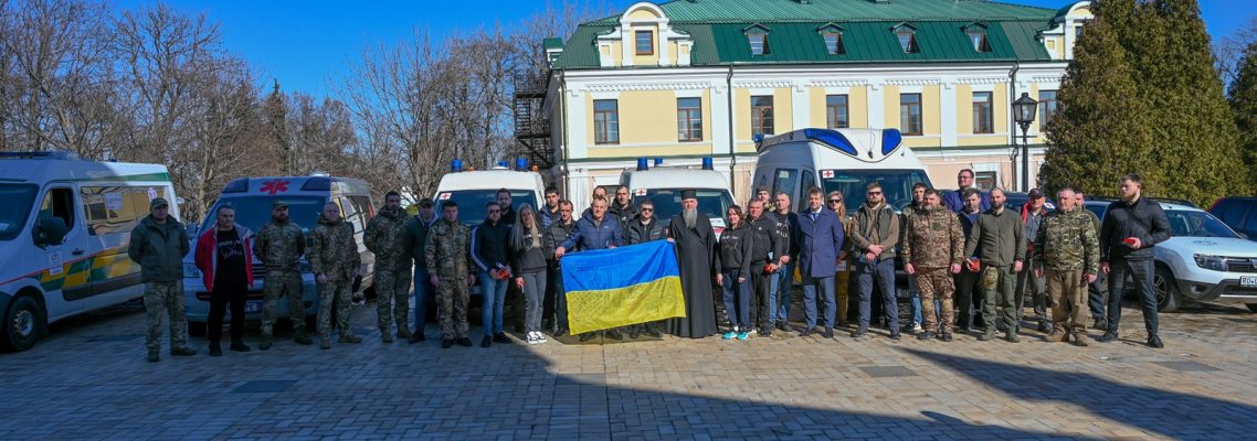 Митрополит Київський і всієї України Епіфаній на подвір’ї Свято-Михайлівського Золотоверхого монастиря 10 березня 2026 року благословив 22 транспортні засоби, з яких 8 – спеціалізовані автомобілі швидкої допомоги, та передав їх захисникам України.